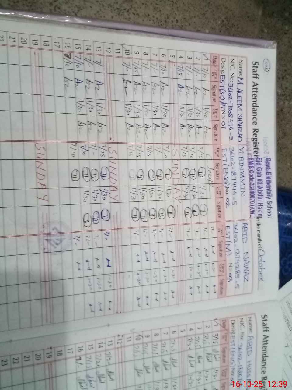 | CNIC | Full Name | Designation | R/C | Absence During Last Calender Month |