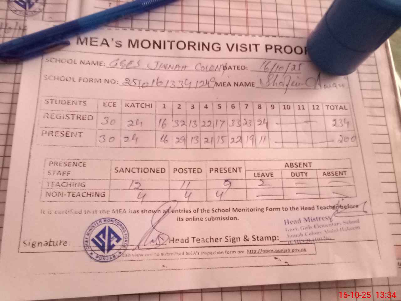 | EMIS Code: 36410126 | Name of School: GGES JINNAH COLONY, ABDUL HAKIM | |||