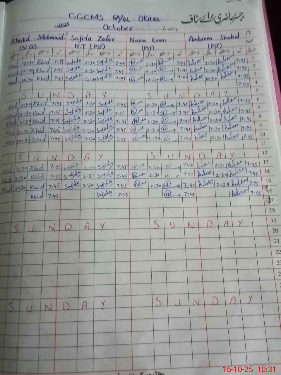 | District: OKARA | Tehsil: OKARA | Markaz: 4/4.L-FEMALE | Level: Primary | |