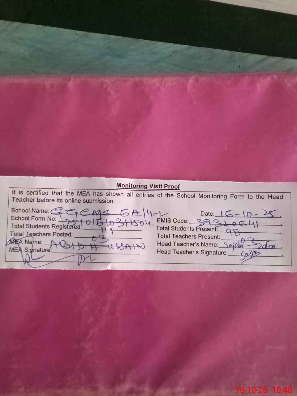 | EMIS Code: 39320641 | Name of School: GGCMS 6-A/4-L | |||