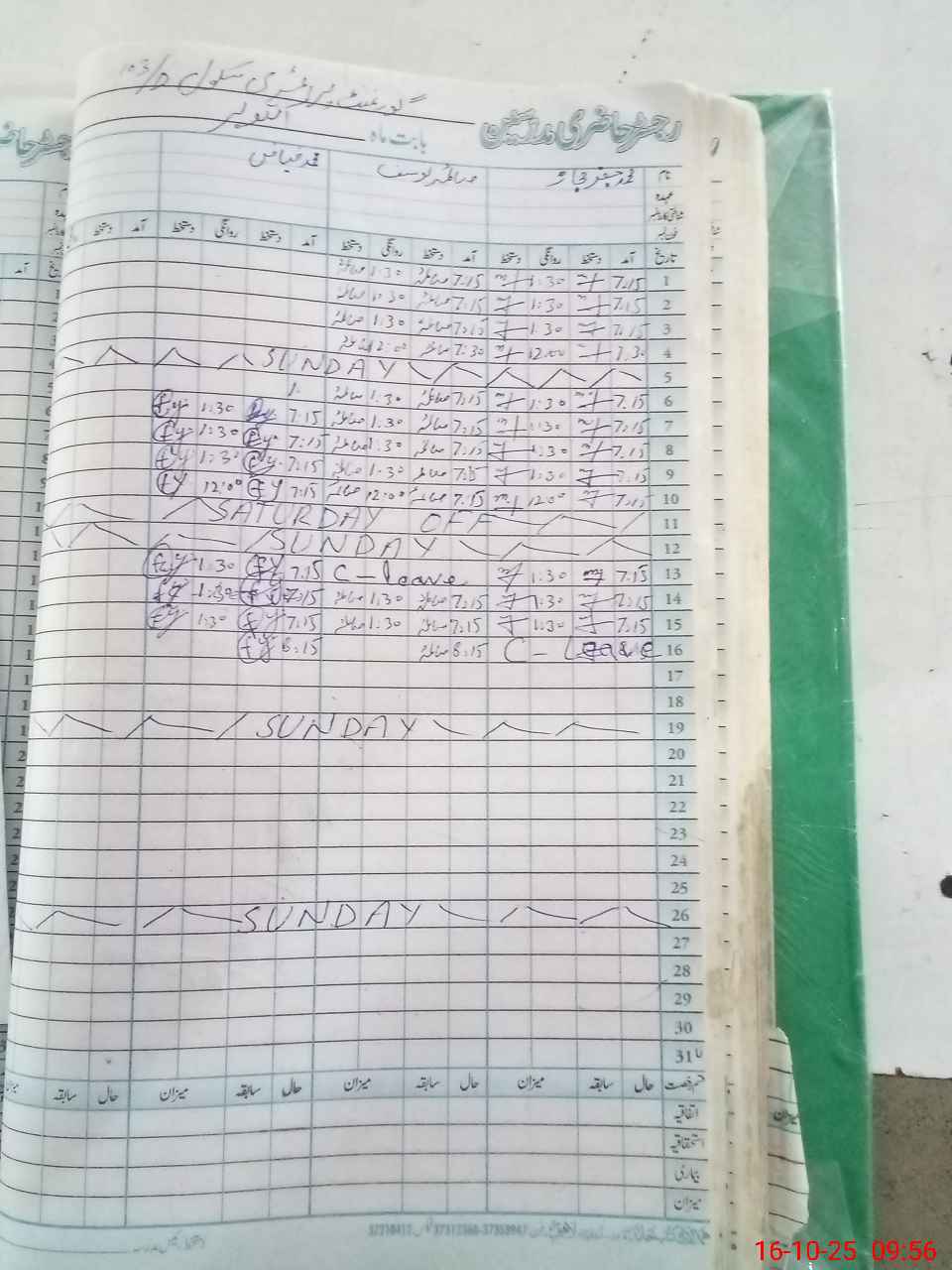 | CNIC | Full Name | Designation | R/C | Absence During Last Calender Month |