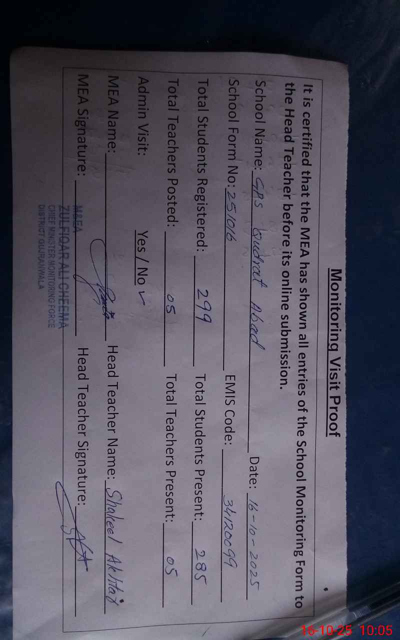 | EMIS Code: 34120099 | Name of School: GPS QUDRAT ABAD | |||