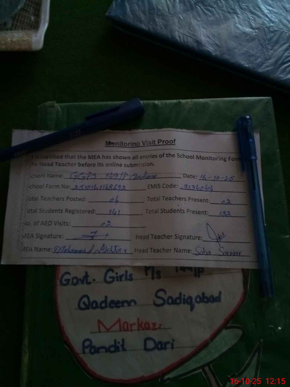 | EMIS Code: 31340414 | Name of School: GGPS 149/P QADEEM SADIQABAD | |||