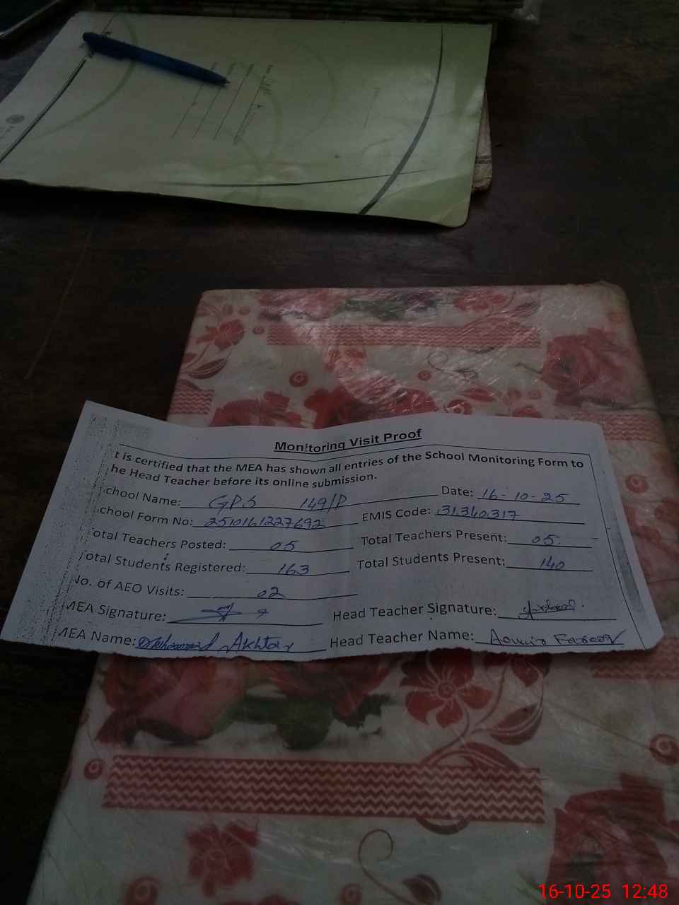 | EMIS Code: 31340317 | Name of School: GPS CHAK 149/P | |||