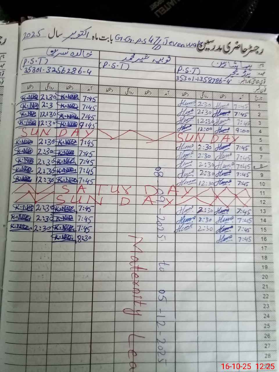 | 35**** | So**** Sh**** Mu**** | PST | Regular | 23 | 0 | 0 | 23 | 0 | 0 | 0 | 0 | 0 | Maternity |