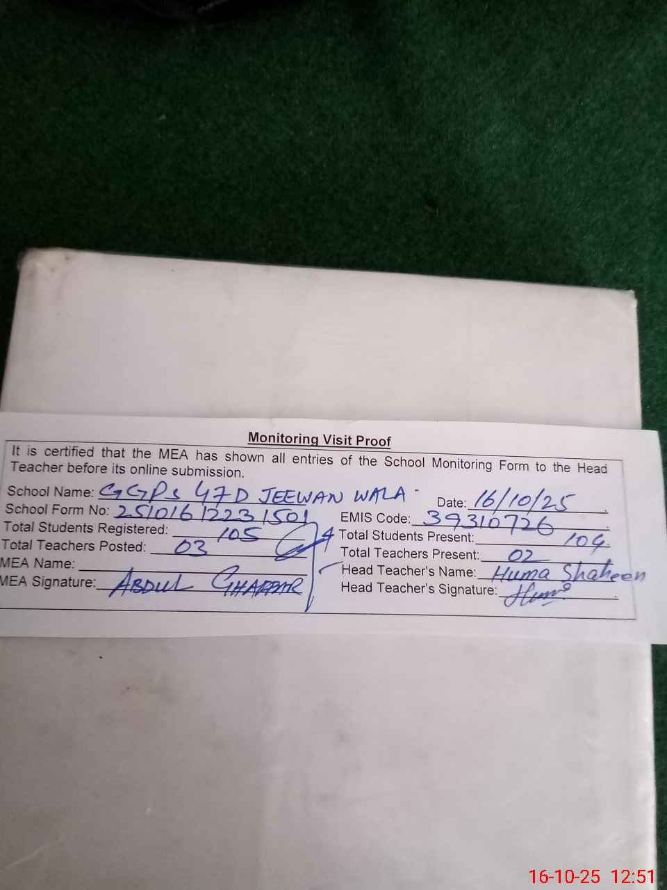 | EMIS Code: 39310726 | Name of School: GGPS 47 D JEEWAN WALA | |||