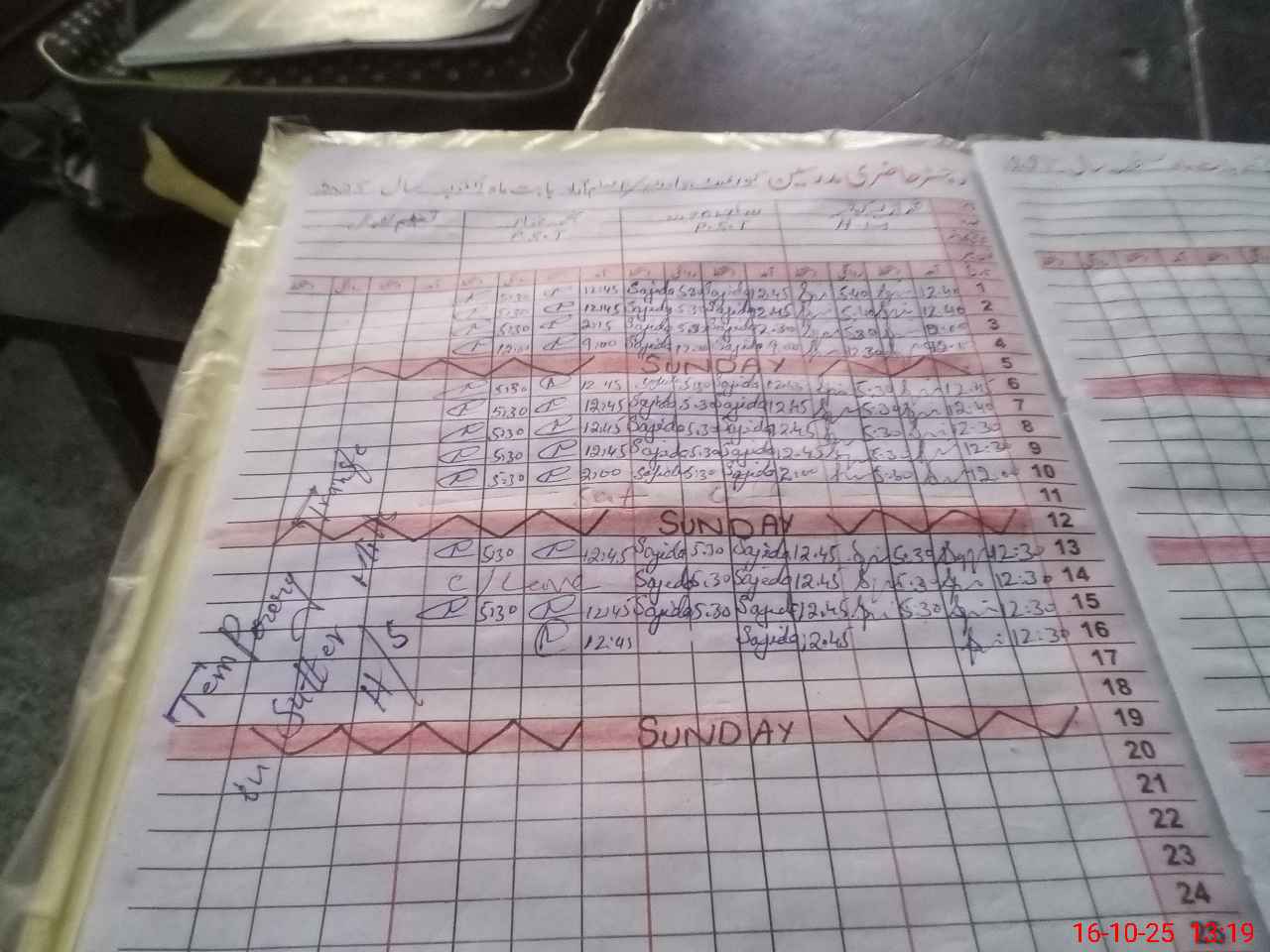 | CNIC | Full Name | Designation | R/C | Absence During Last Calender Month |