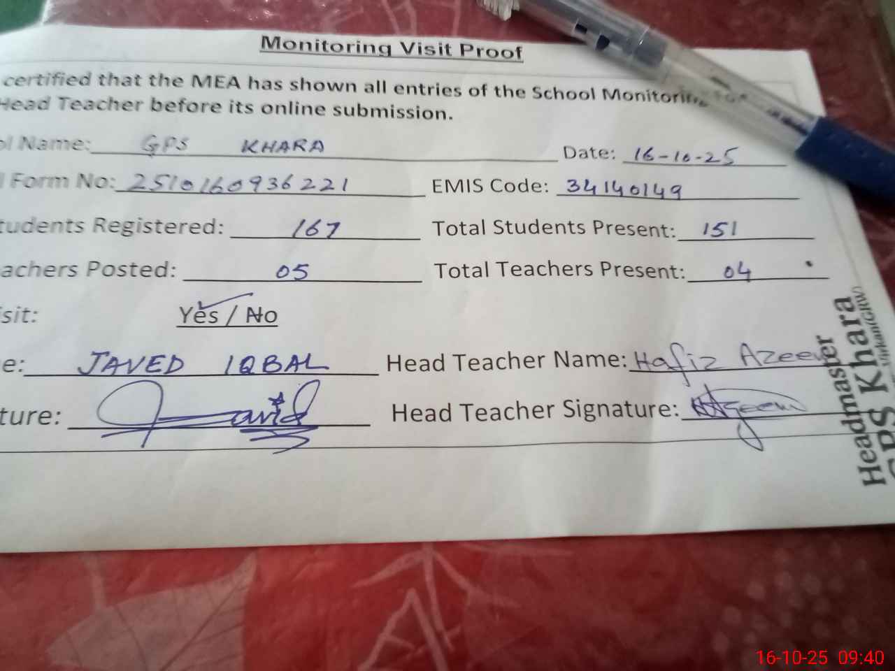 | EMIS Code: 34140149 | Name of School: GPS KHARA | |||