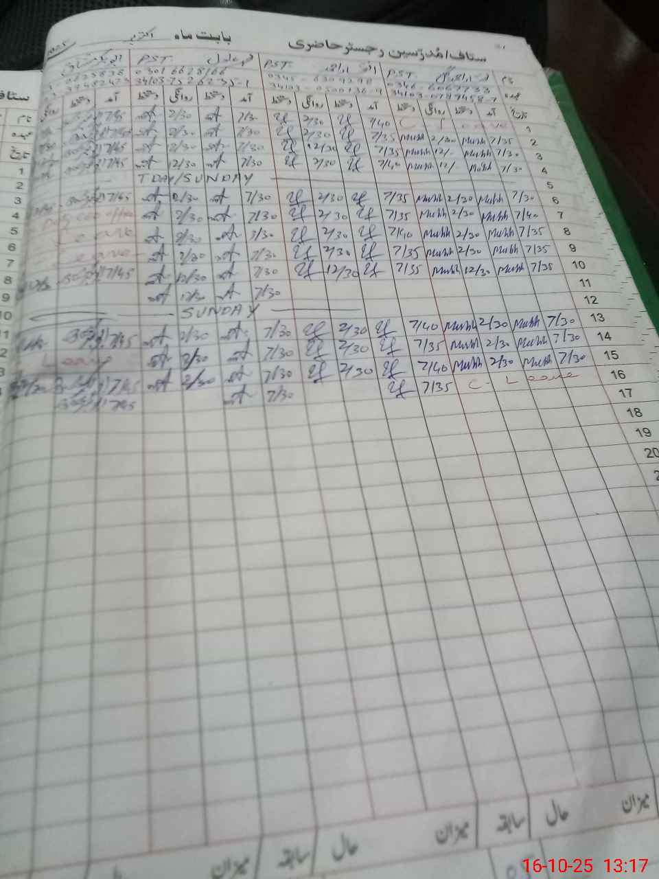 | CNIC | Full Name | Designation | R/C | Absence during last cal. month |