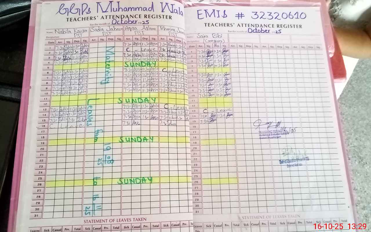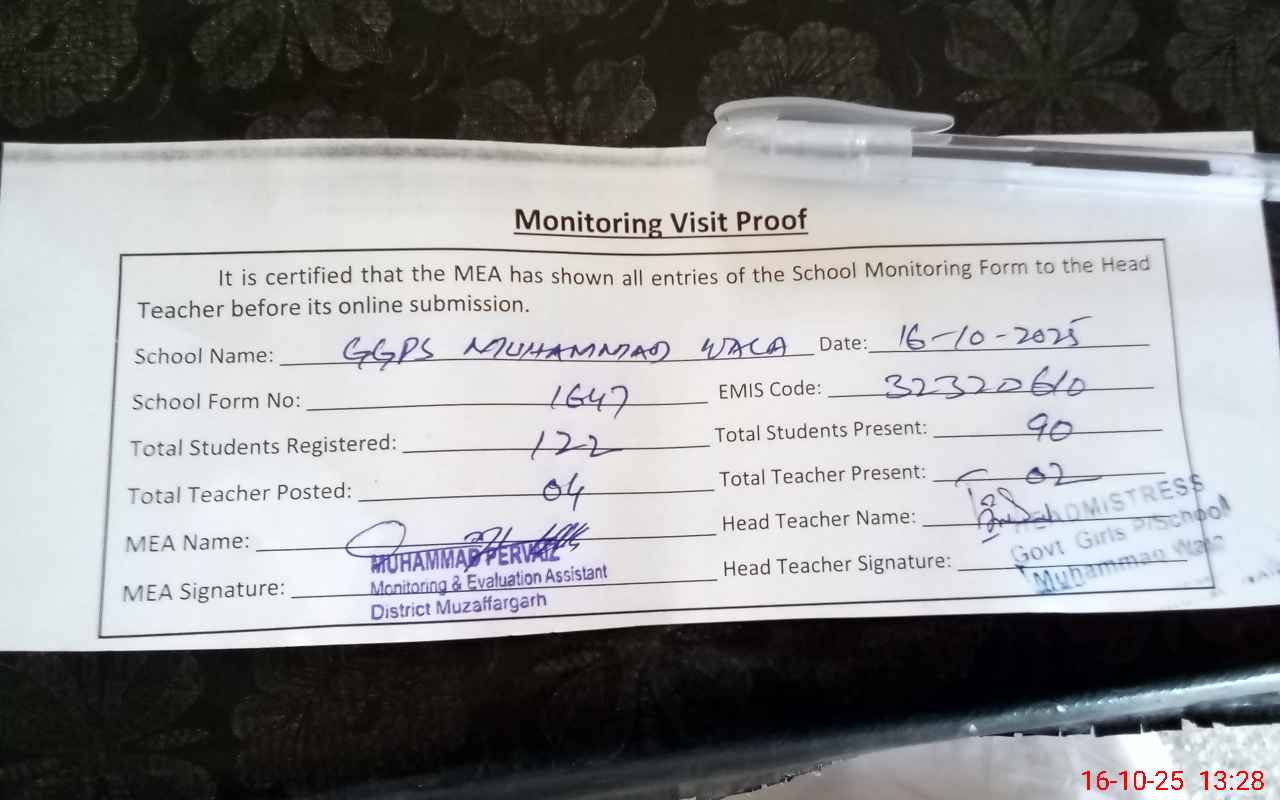 | EMIS Code: 32320610 | Name of School: GGPS MUHAMMAD WALA | |||