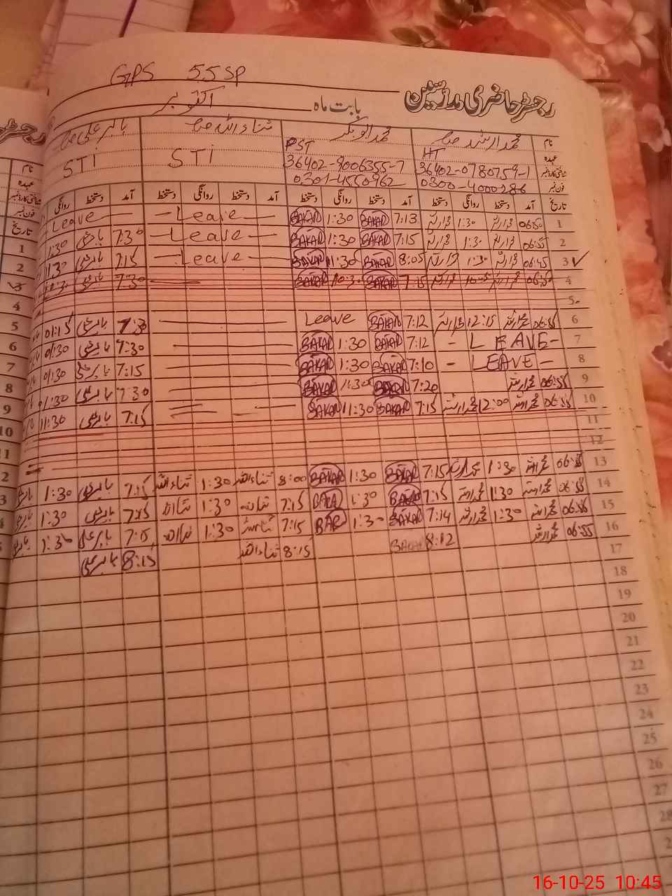 | CNIC | Full Name | Designation | R/C | Absence during last cal. month |