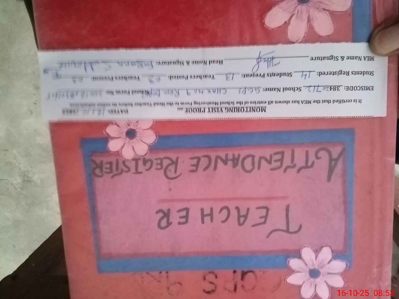 | Attendance Register | Head Teacher | MEA with School | Visit Proof |
