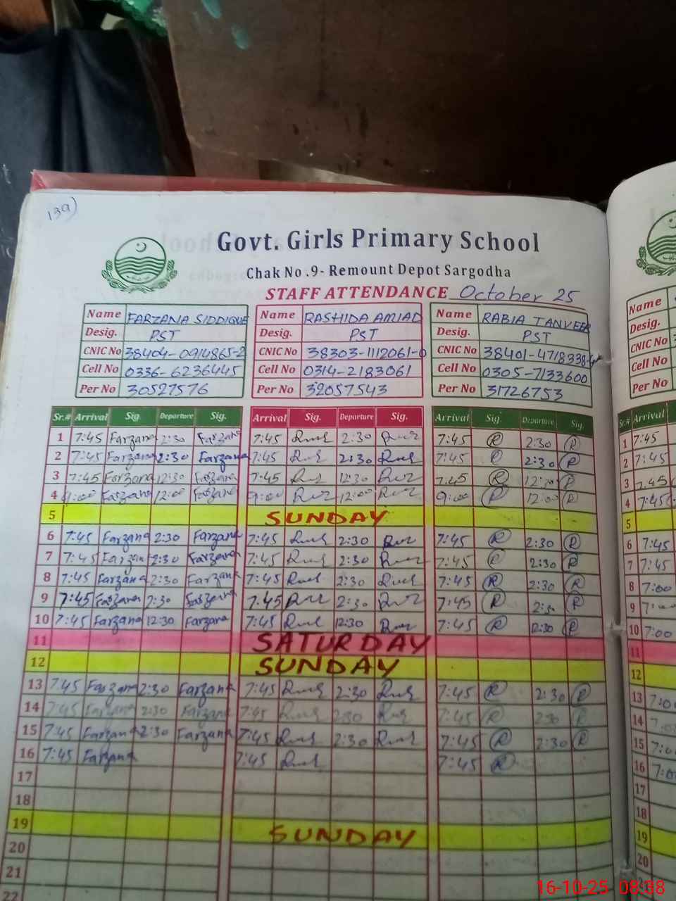 | CNIC | Full Name | Designation | R/C | Absence During Last Calender Month |