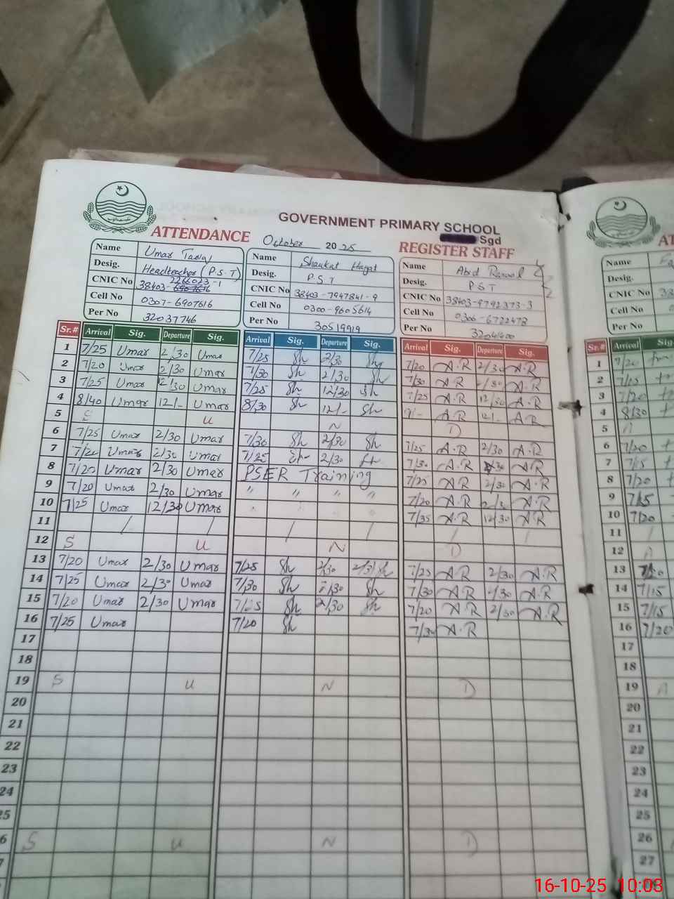 | Name: Um**** Ta**** Designation: (School Headmaster's/Headmistress's) PST Phone/Cell Number: 03**** |