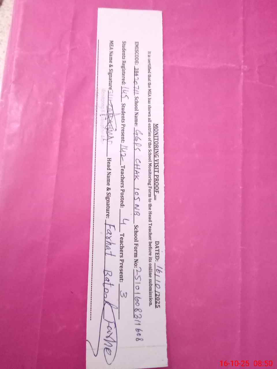 | EMIS Code: 38420711 | Name of School: GGPS CHAK NO.105 NB | |||