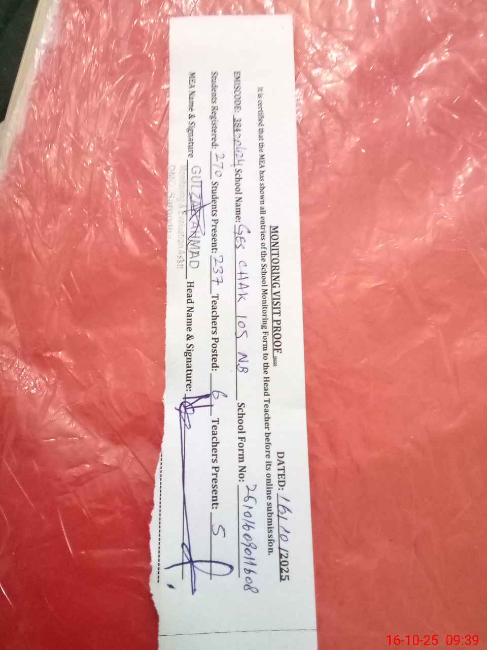 | EMIS Code: 38420424 | Name of School: GES CHAK NO.105 NB | |||