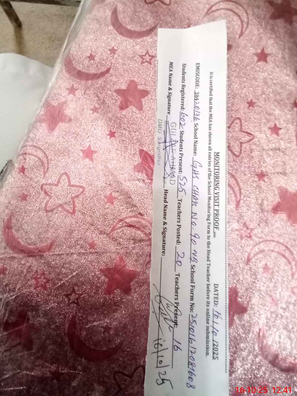 | Certified that this School was Inspected by the Undersigned MEA/DMO Today and the Information Stated Above is as Per Record. | |||||