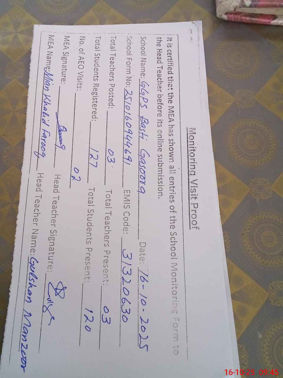 | EMIS Code: 31320630 | Name of School: GGPS BASTI GHASOORA | |||