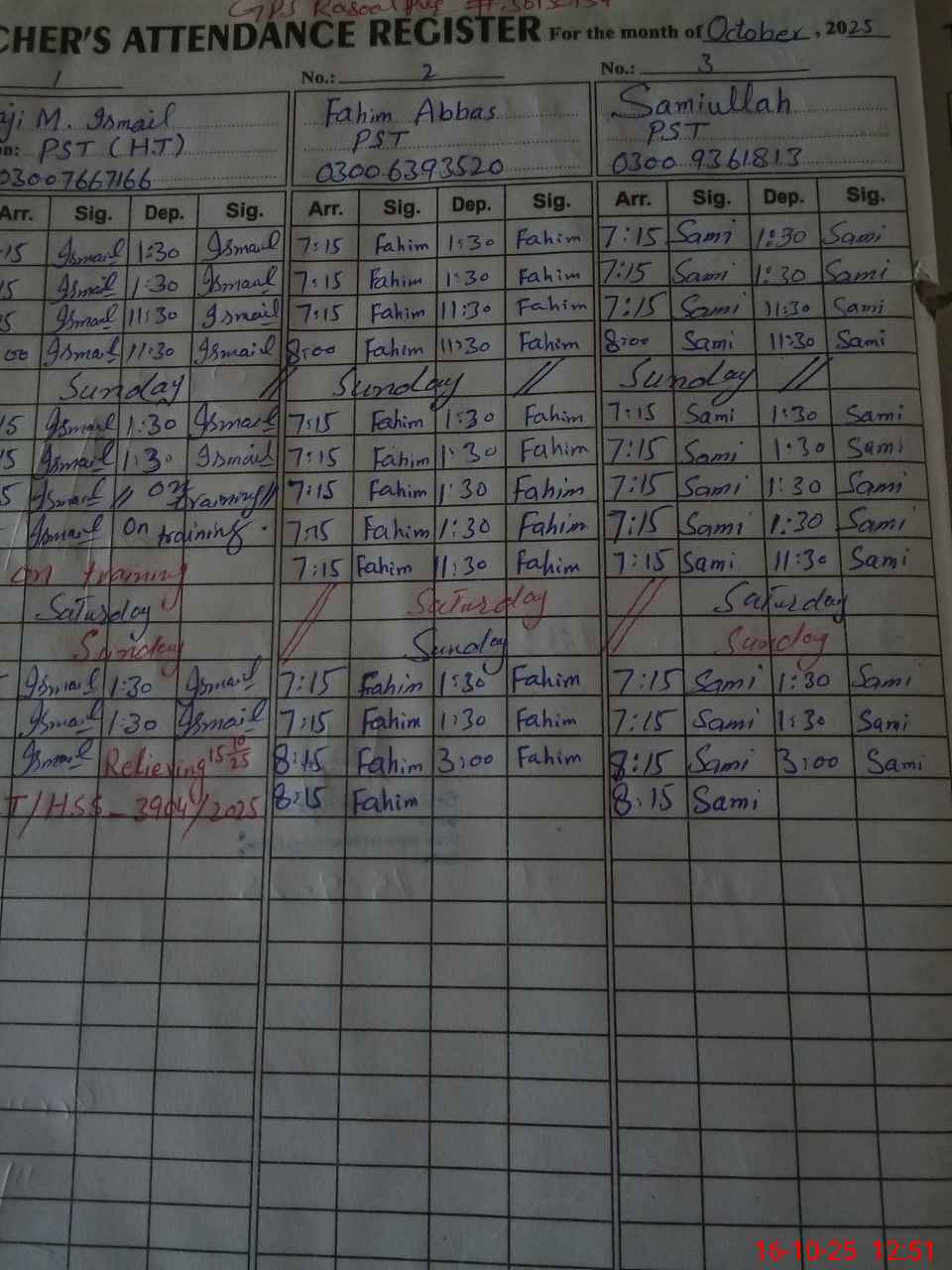 | Name: Sa**** Designation: (School Headmaster's/Headmistress's) PST Phone/Cell Number: 03**** |