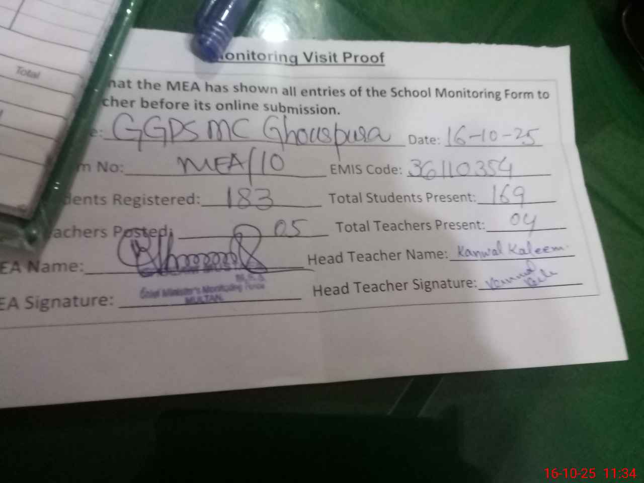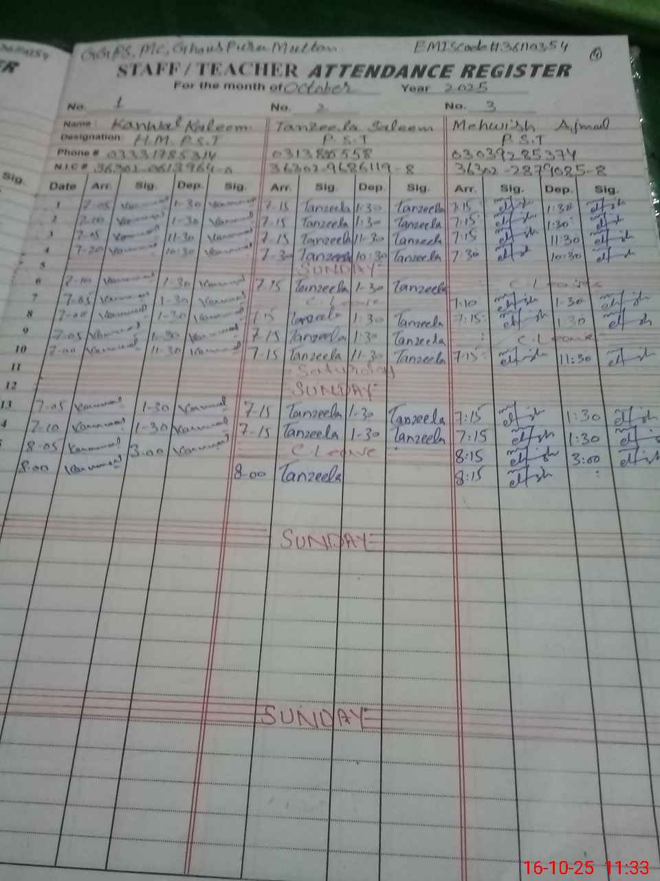 | EMIS Code: 36110354 | Name of School: GGPS MC GHOUS PURA | |||