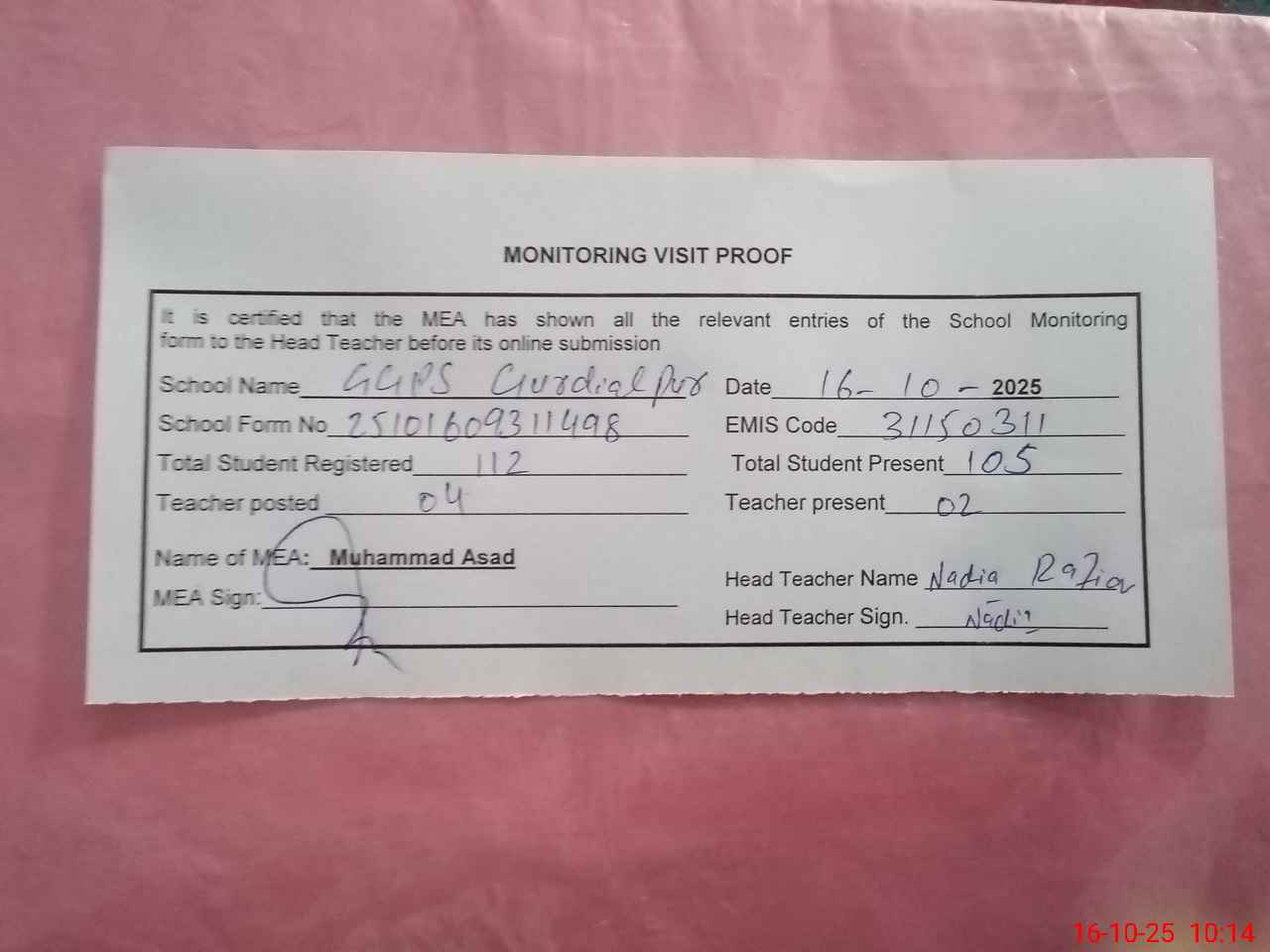 | EMIS Code: 31150311 | Name of School: GGPS GURDIAL PUR | |||