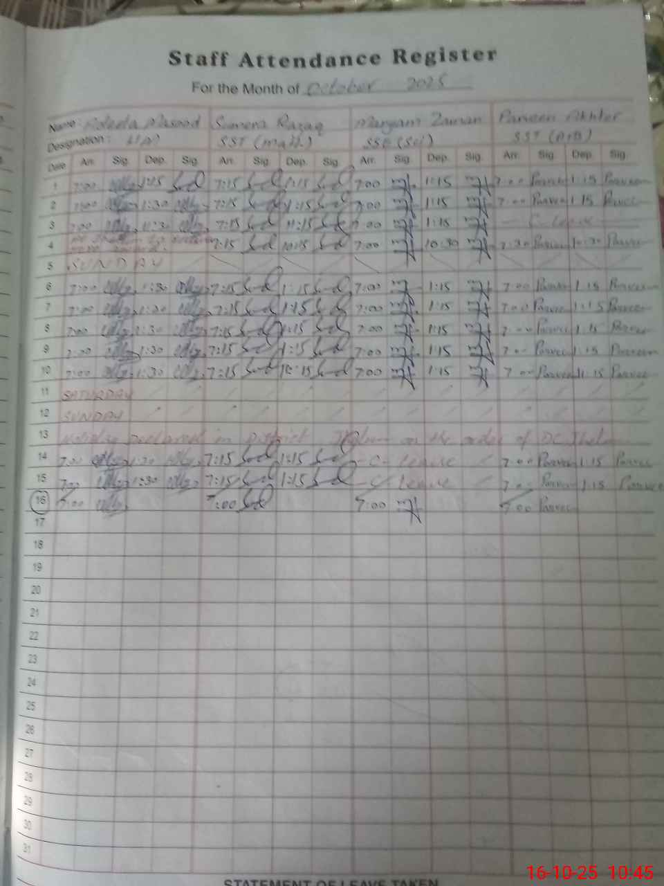 | 42**** | Hi**** Ka**** | PST | Regular | 0 | 0 | 27 | 0 | 0 | 0 | 0 | 0 | 0 | Absent (Un-Authorized) |