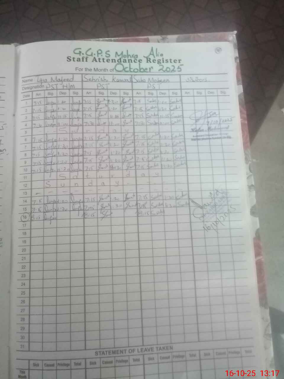 | Name: IQ**** MA**** Designation: (School Headmaster's/Headmistress's) PST Phone/Cell Number: 03**** |