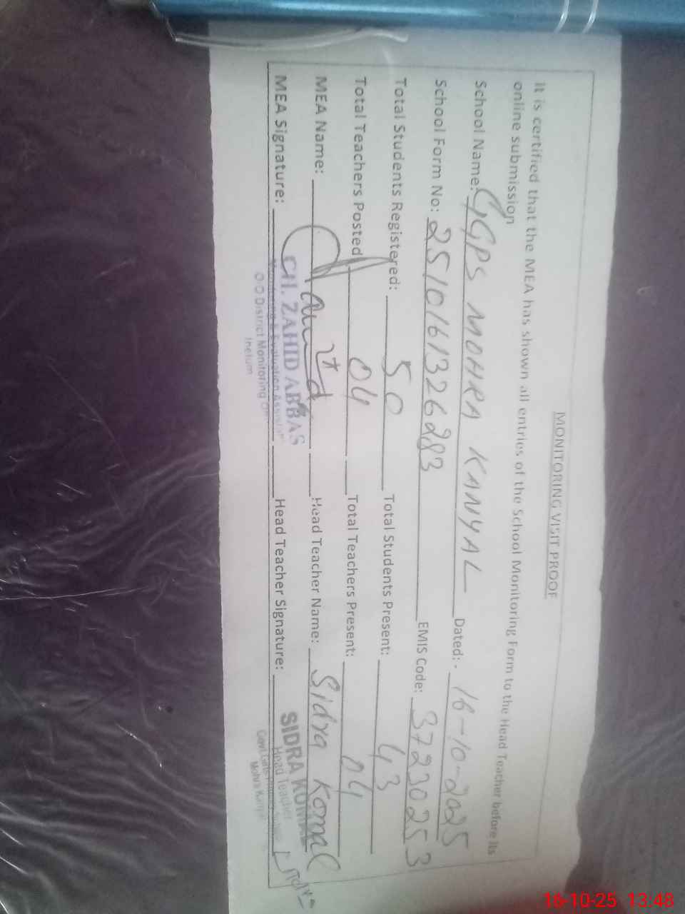 | EMIS Code: 37230253 | Name of School: GGPS MOHRA KANYAL | |||