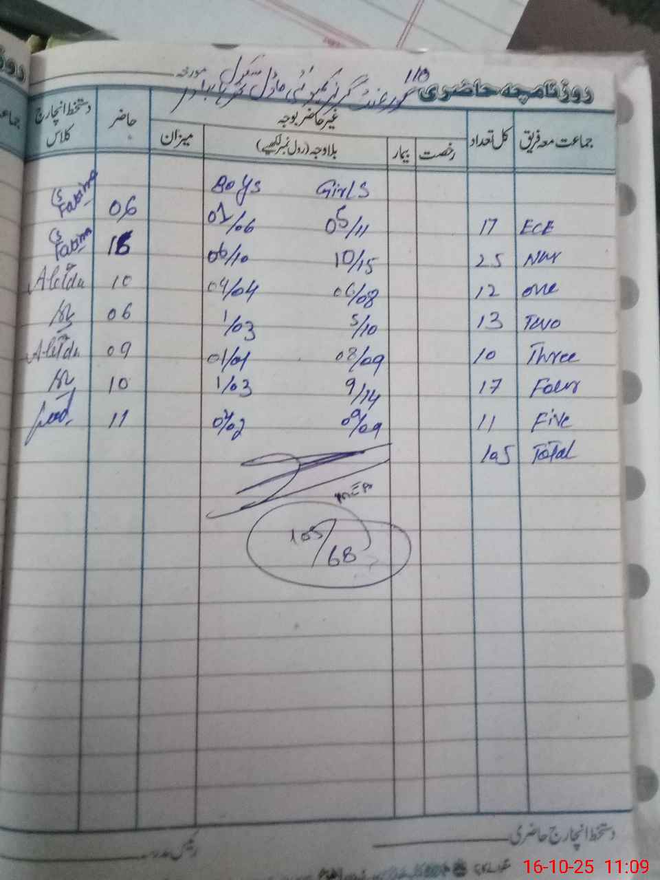 | Total Students Present | 6 | 0 | 16 | 10 | 6 | 9 | 10 | 11 | 68 | |||||||