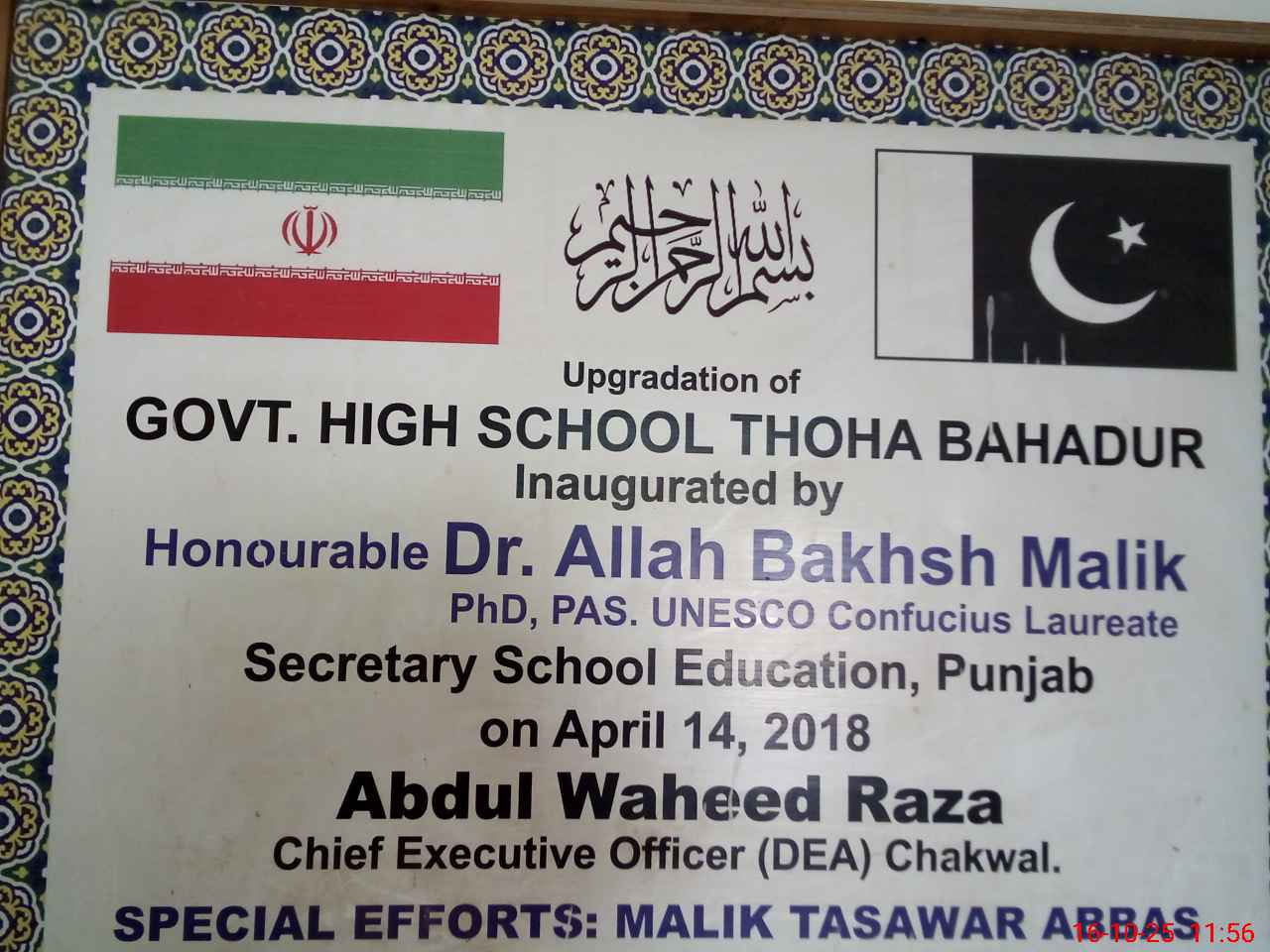 | Name: Mu**** Ar**** Designation: (School Headmaster's/Headmistress's) Headmaster Phone/Cell Number: 03**** |