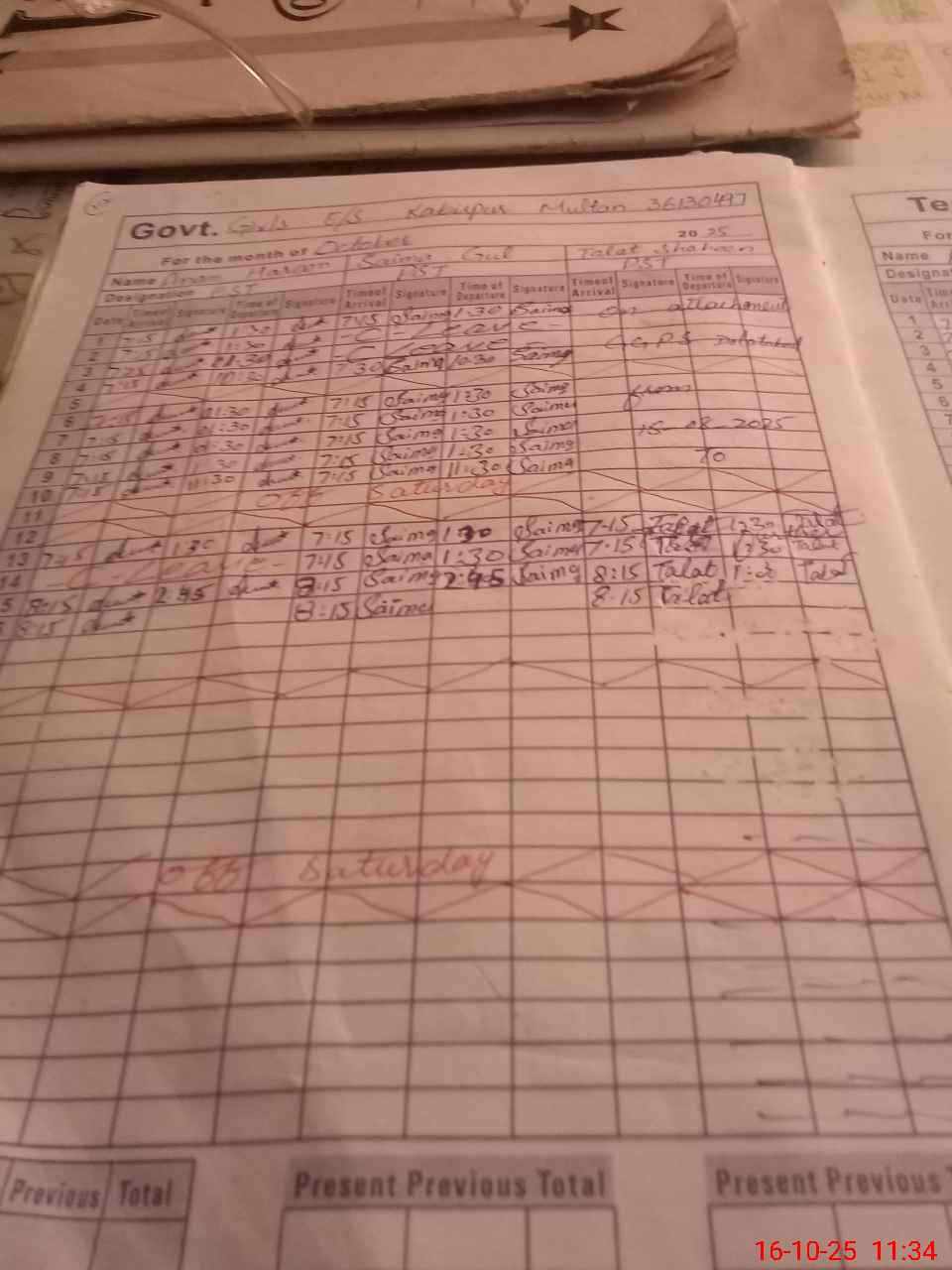 | CNIC | Full Name | Designation | R/C | Absence During Last Calender Month |