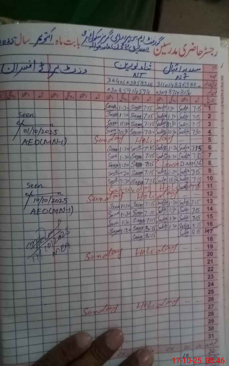 | Name: FA**** GU**** Designation: (School Headmaster's/Headmistress's) PST Phone/Cell Number: 03**** |