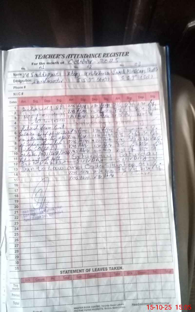 | Name: Mu**** Sa**** Ga**** Designation: (School Headmaster's/Headmistress's) HM Phone/Cell Number: 03**** |