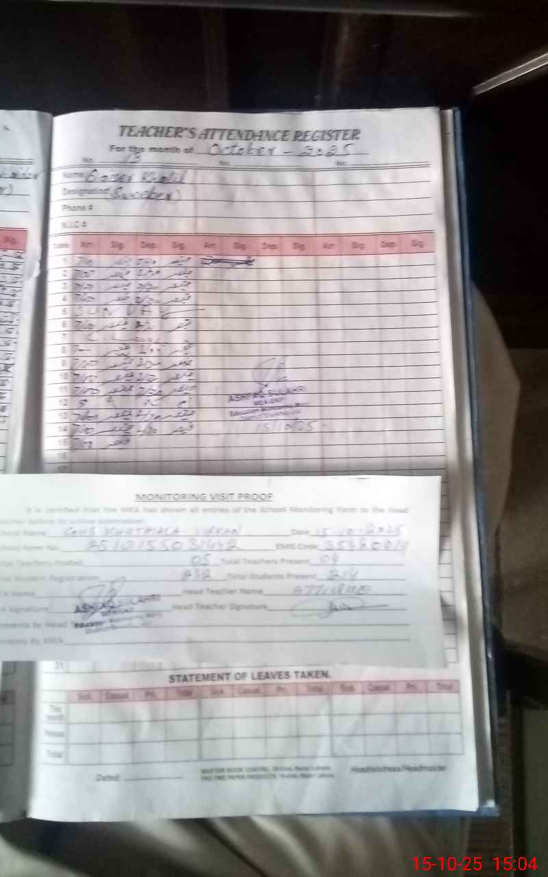 | Attendance Register | Head Teacher | MEA with School | Visit Proof |