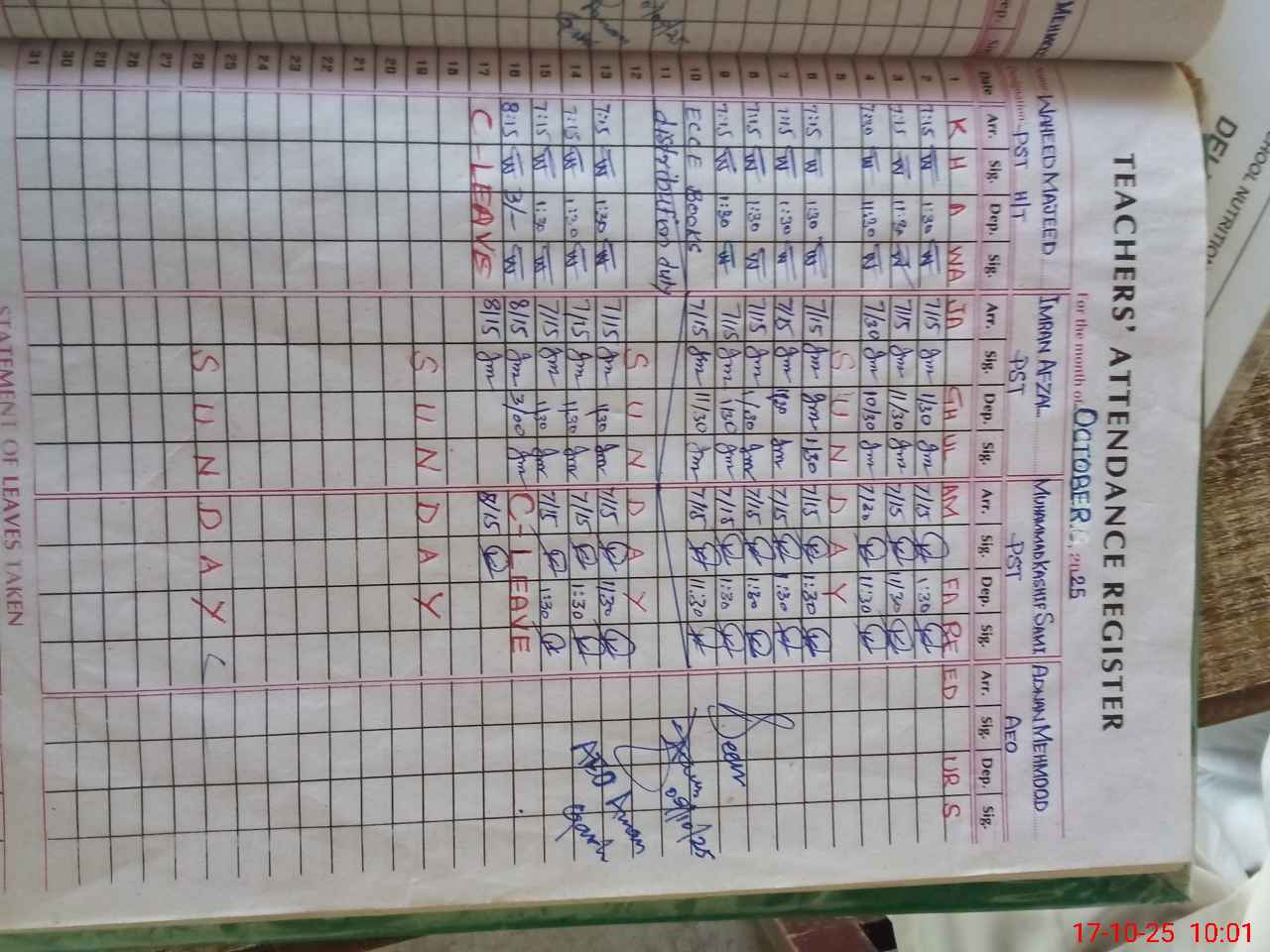 | Remarks (Use Separate Page if Required): Daily attendance of teachers and students is not marked on SIS | |||||