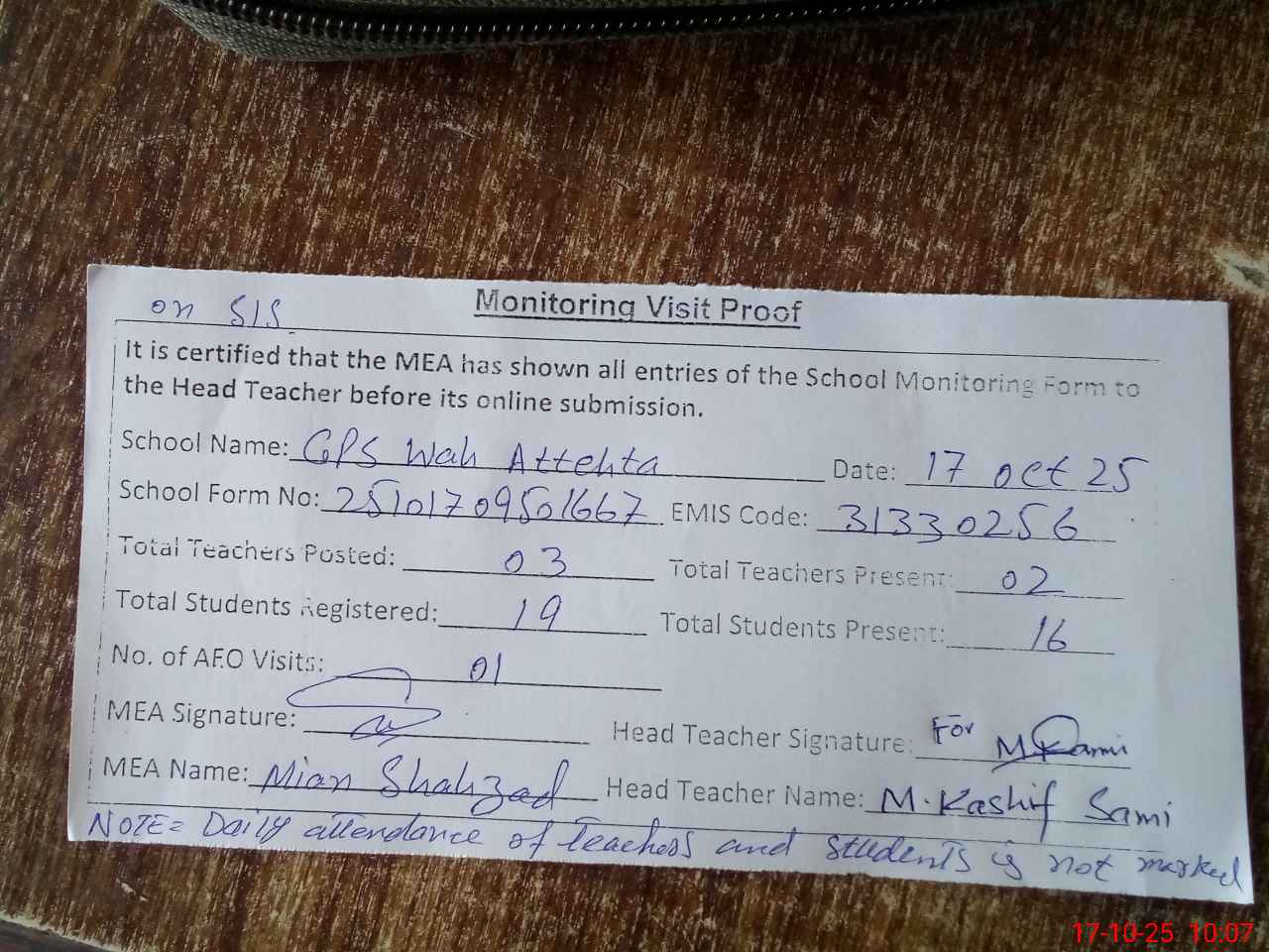 | EMIS Code: 31330256 | Name of School: GPS WAH ATTEHTA | |||