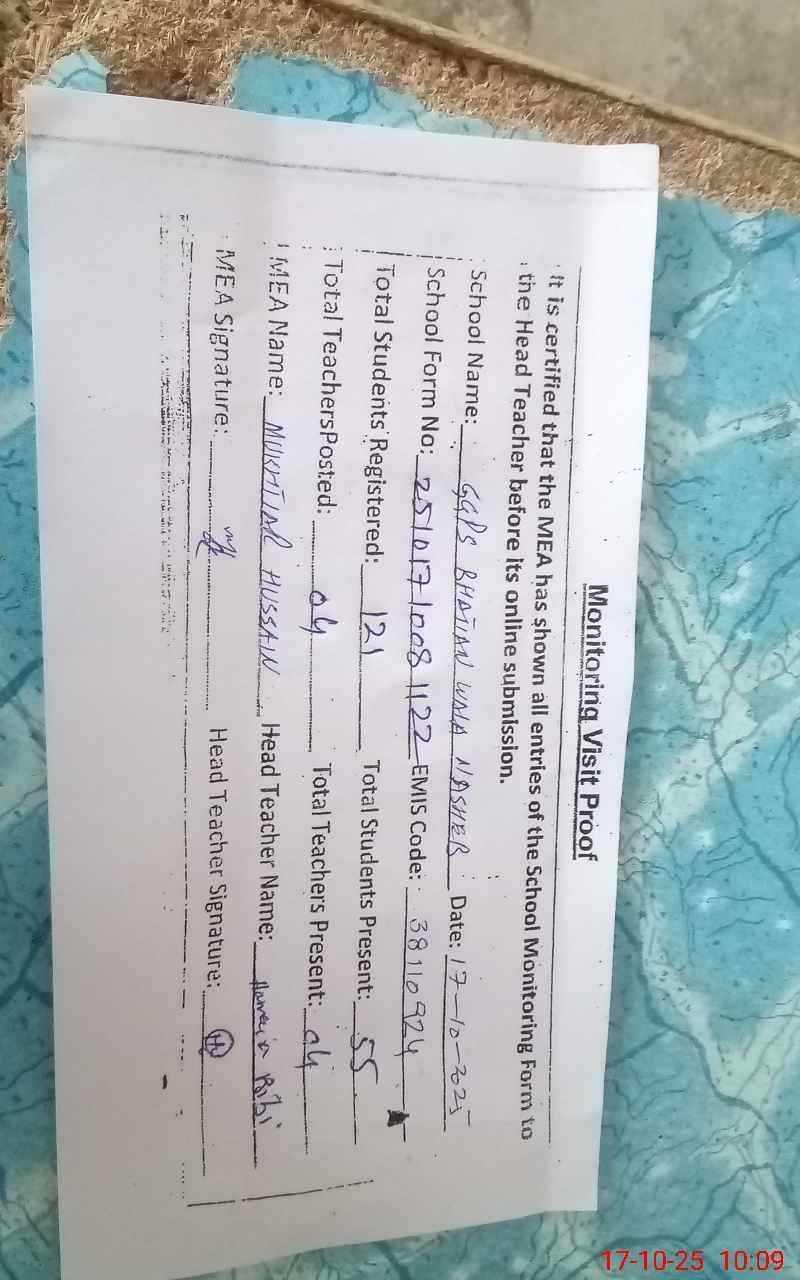 | EMIS Code: 38110924 | Name of School: GGPS BHATIAN WALA NASHAIB RAZAI SHAH | |||