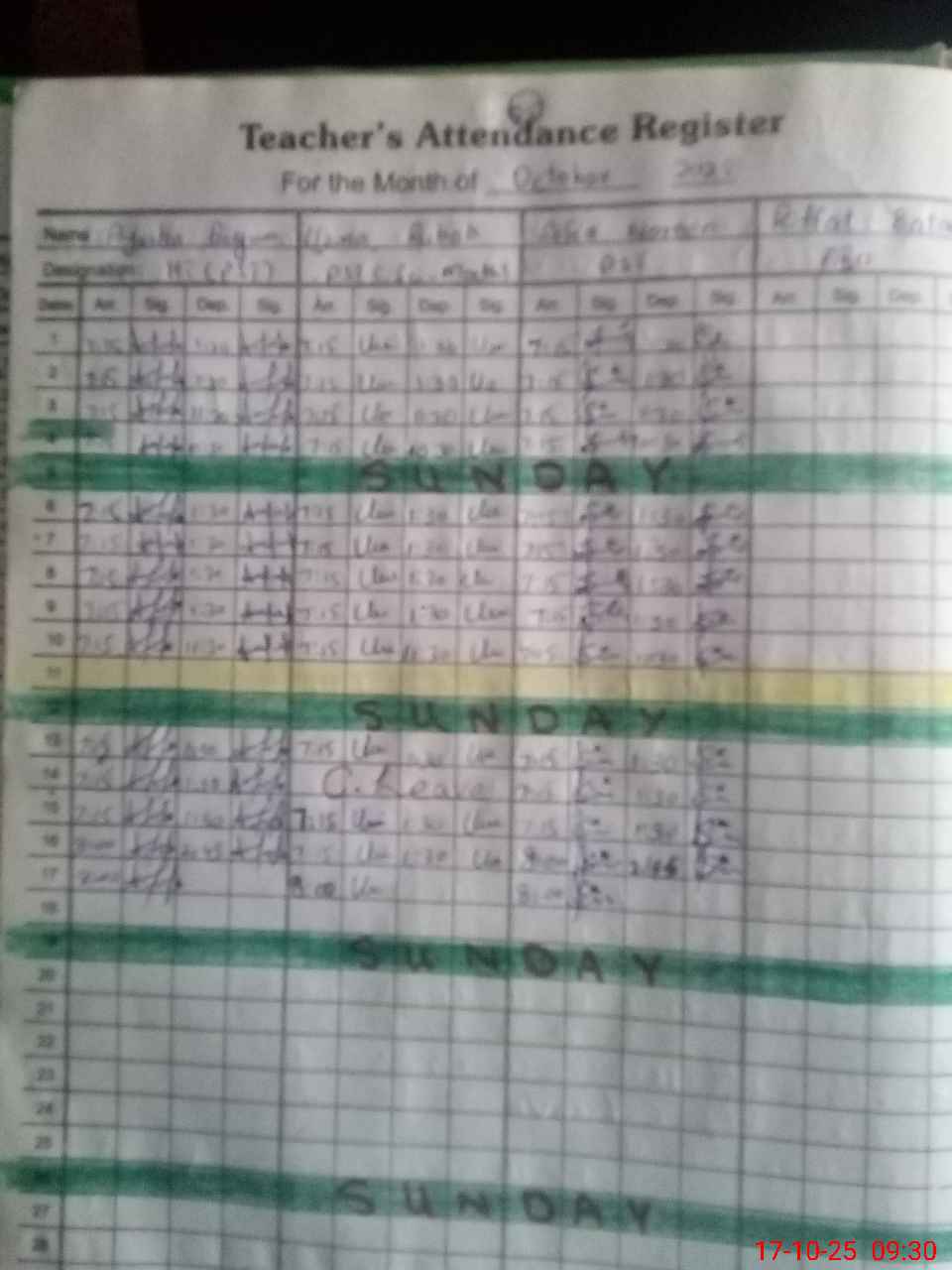 | CNIC | Full Name | Designation | R/C | Absence During Last Calender Month |