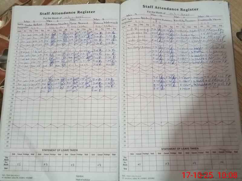 | CNIC | Full Name | Designation | R/C | Absence During Last Calender Month |