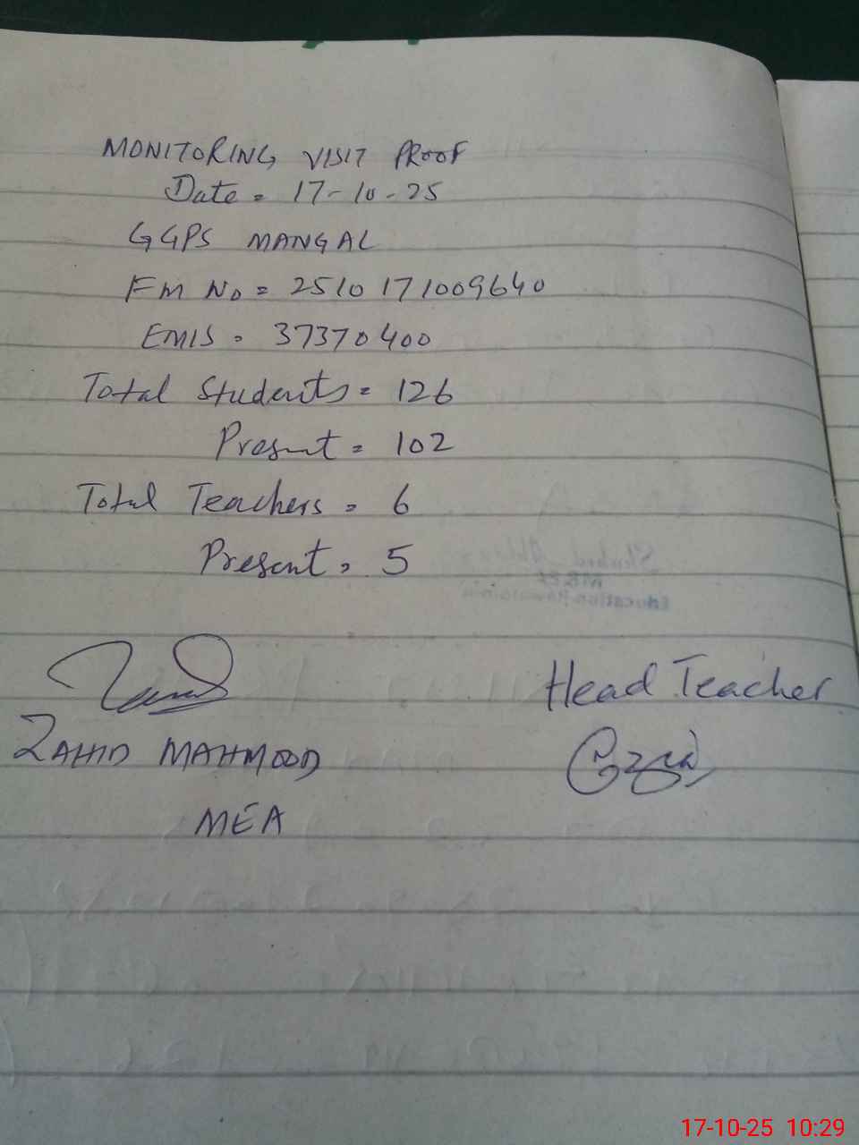 | EMIS Code: 37370400 | Name of School: GGPS MANGAL | |||