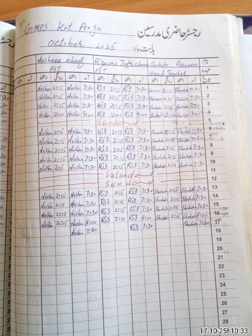 | CNIC | Full Name | Designation | R/C | Absence During Last Calender Month |