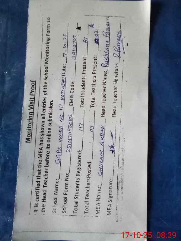 | EMIS Code: 38110707 | Name of School: GGPS KOTLA JAAM WARD NO. 111 | |||