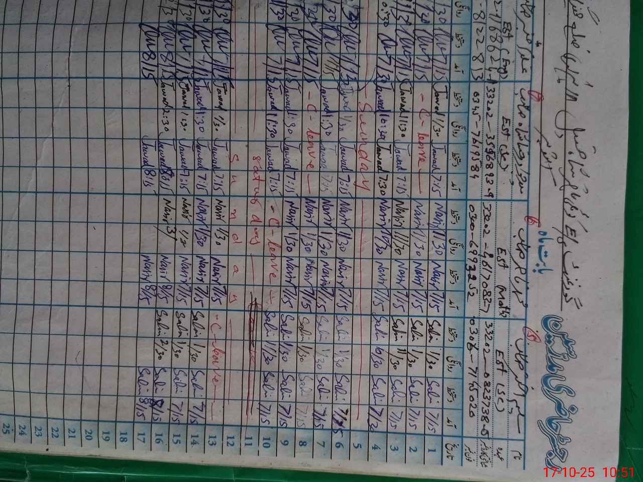 | CNIC | Full Name | Designation | R/C | Absence During Last Calender Month |