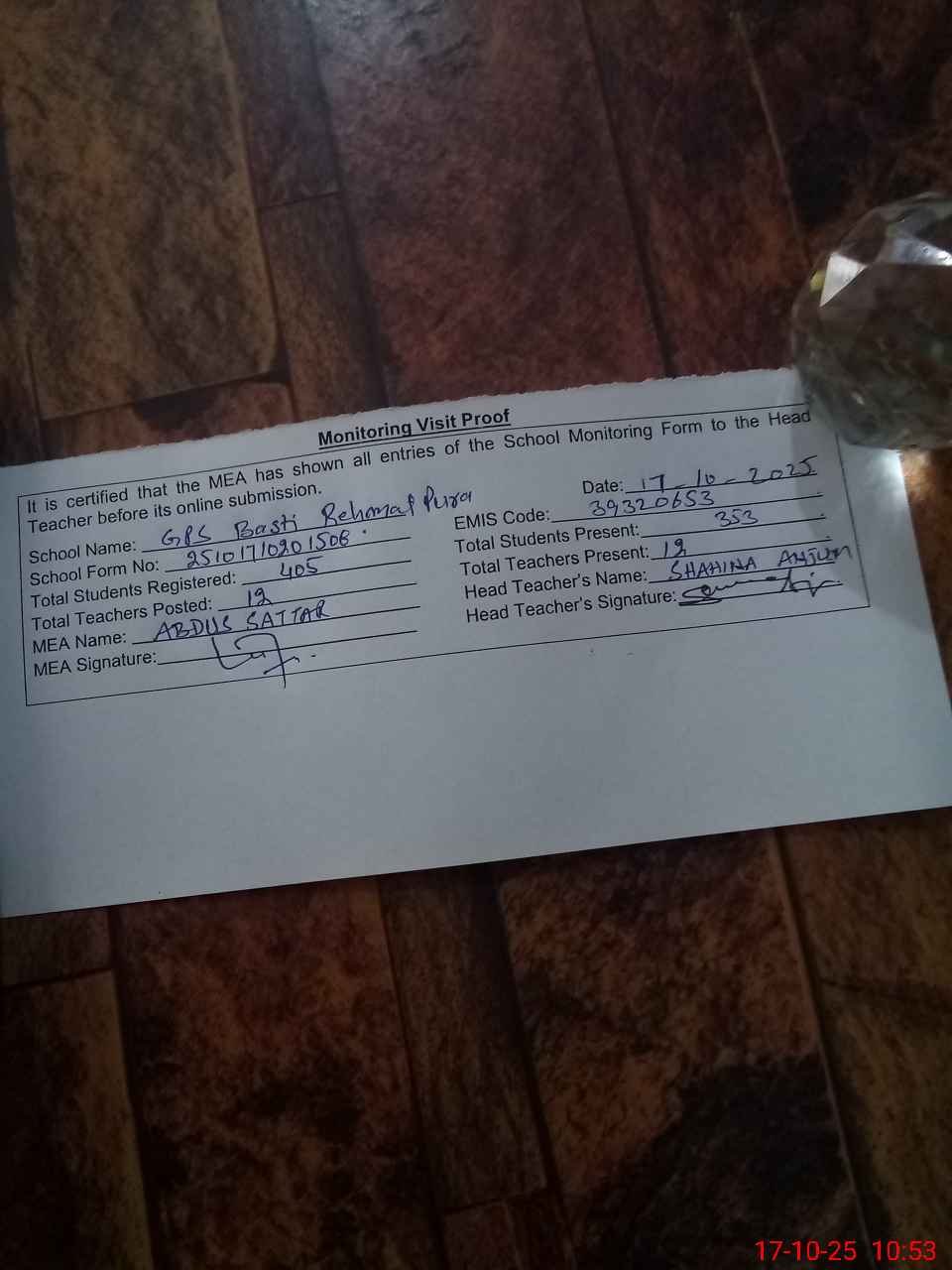 | EMIS Code: 39320653 | Name of School: GMPS BASTI REHMAT PURA | |||