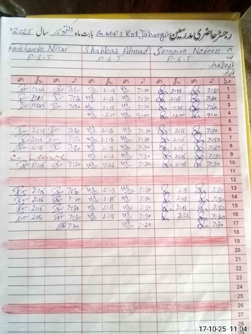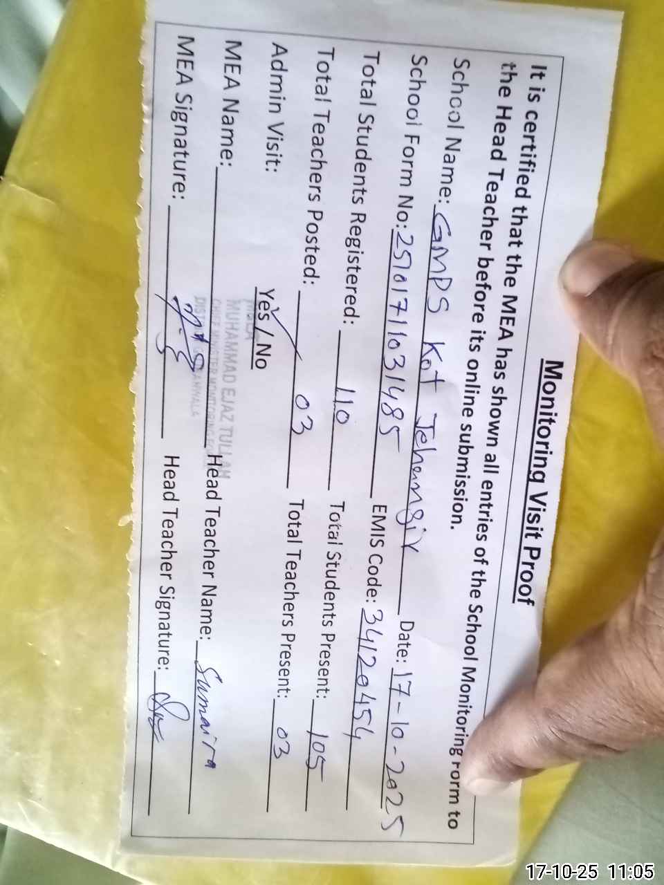 | EMIS Code: 34120454 | Name of School: GMPS KOT JAHANGIR | |||