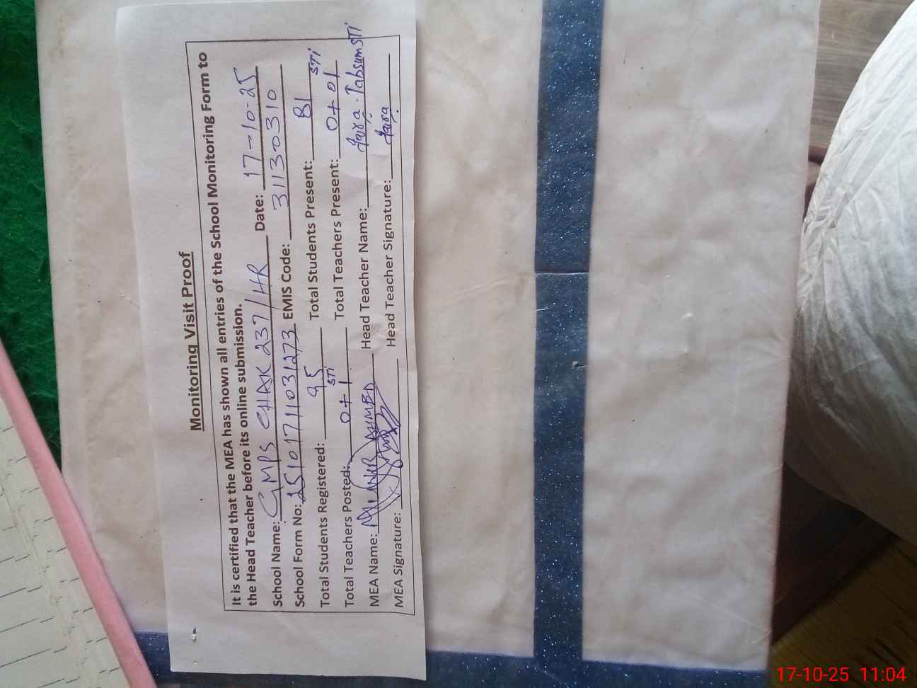| EMIS Code: 31130310 | Name of School: GMPS CHAK NO. 237/9-R | |||