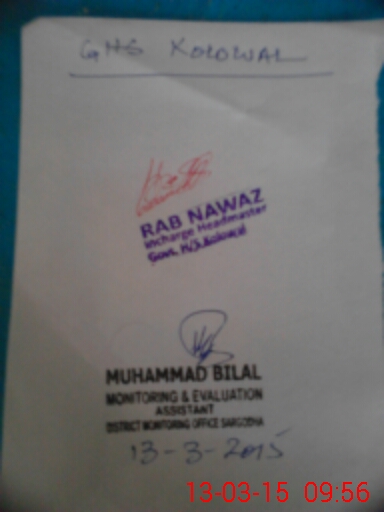 | EMIS Code: 38420134 | Name of School: GHS KOLOWAL NANGIANA | |||