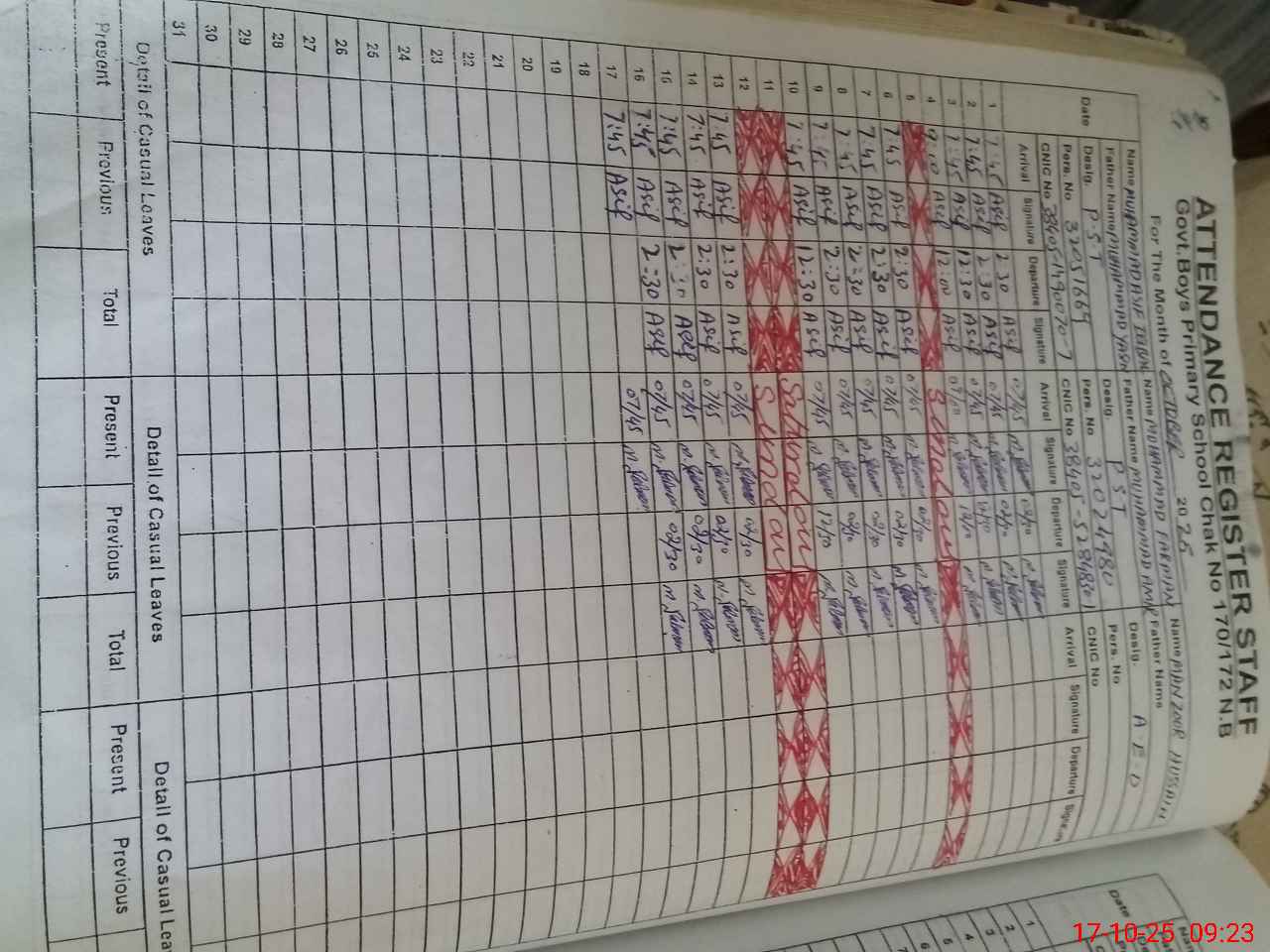 | Name: Mu**** As**** Iq**** Designation: (School Headmaster's/Headmistress's) PST Phone/Cell Number: 03**** |