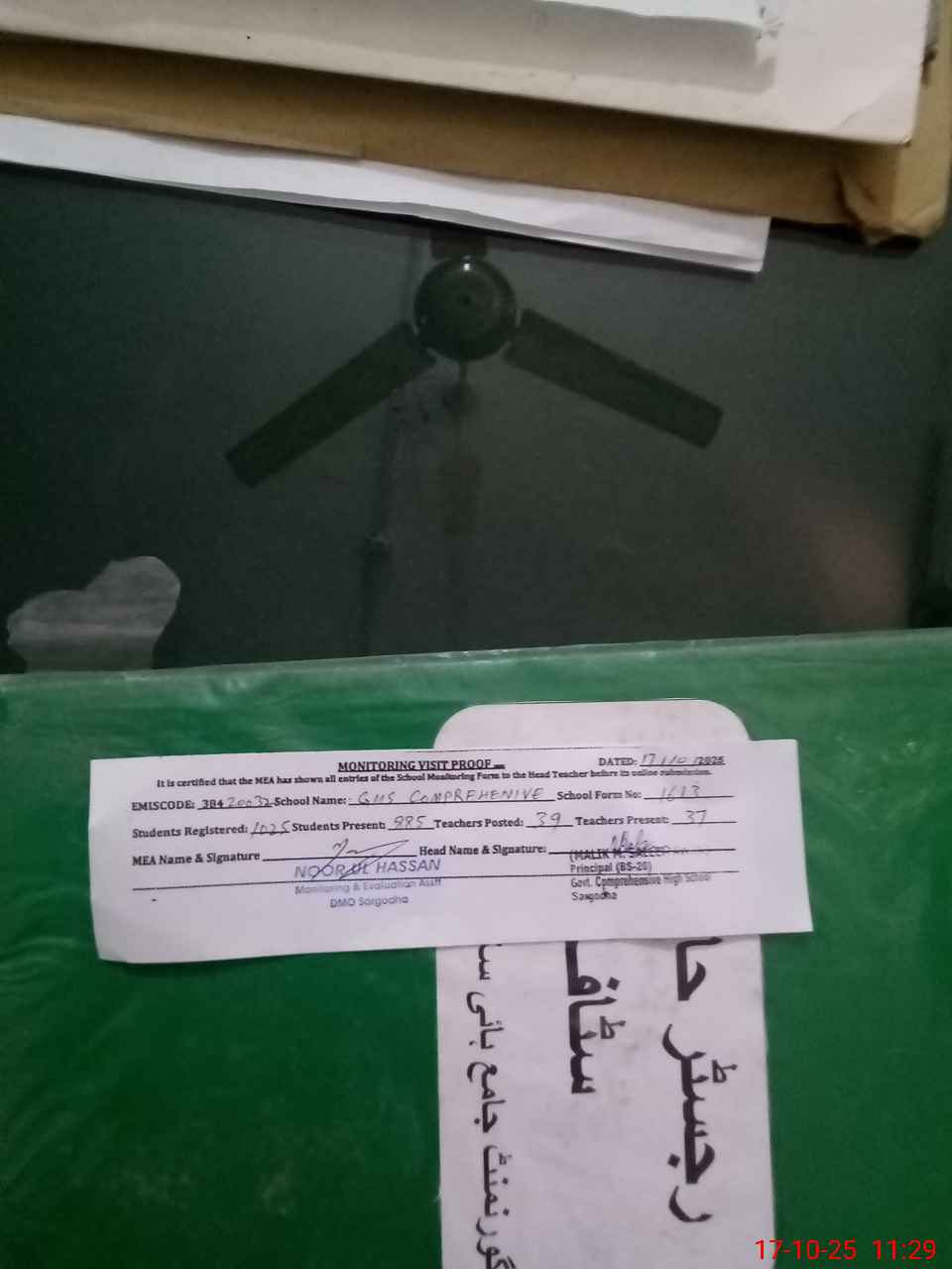 | Certified that this School was Inspected by the Undersigned MEA/DMO Today and the Information Stated Above is as Per Record. | |||||