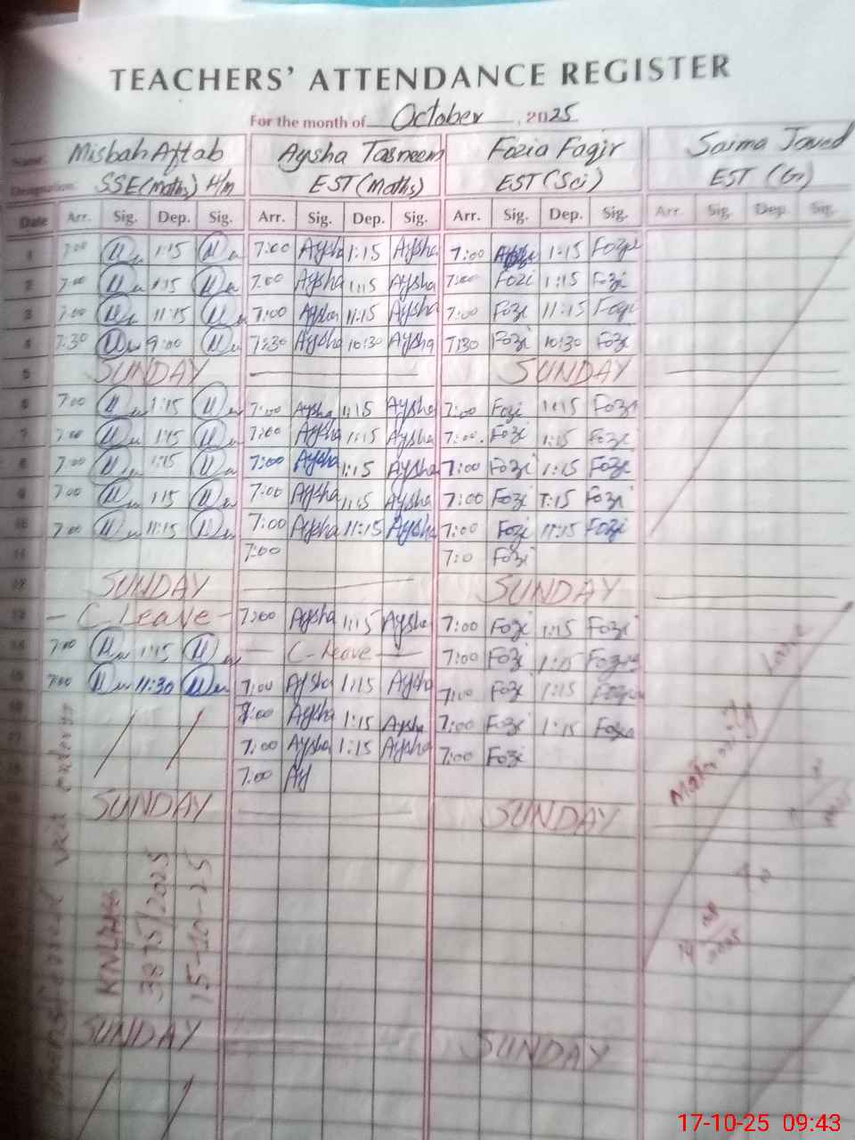 | Monitoring Date: 17-10-2025 | Start Time: 17-10-2025 08:43 AM | End Time: 17-10-2025 09:51 AM | Name of MEA: AB**** RA**** | |